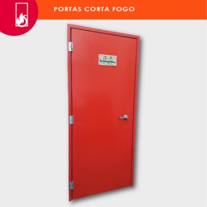 As portas corta-fogo são do tipo de abrir com eixo vertical, compostas de batentes, ferragens e das portas em si, com a função de impedir ou retardar a propagação do fogo e calor.